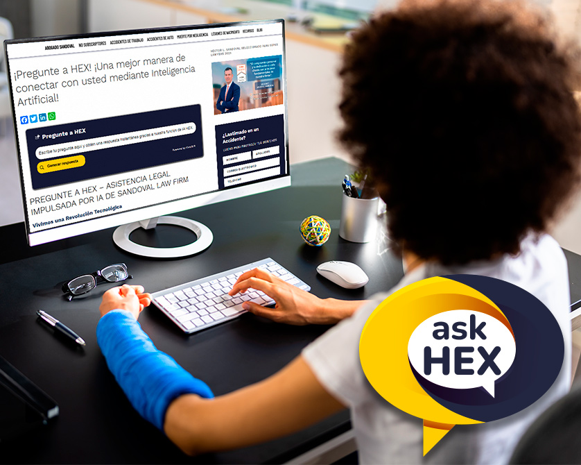 Te invitamos a visitar el sitio web de Sandoval Law Firm y buscar la función Ask HEX. Escribe tu pregunta y explora contenido legal directamente basado en la experiencia del Abogado Sandoval representando a texanos lesionados.